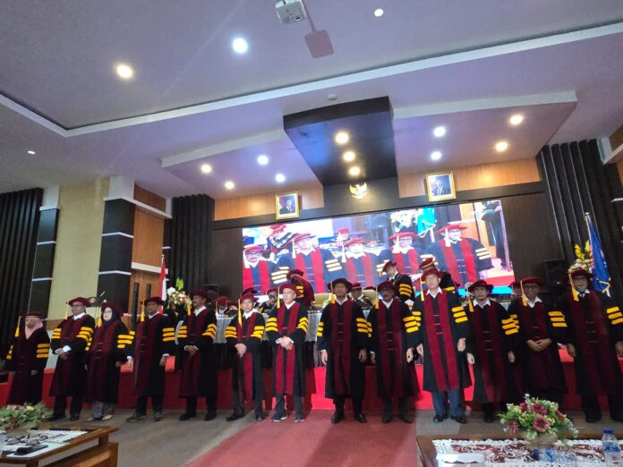 Rektor Untad dalam sambutannya menegaskan bahwa peningkatan jumlah guru besar dalam tiga tahun terakhir merupakan hasil dari berbagai kebijakan strategis yang ditempuh universitas, khususnya dalam penguatan tata kelola akademik dan sistem pembinaan karier dosen. Menurut Rektor, salah satu faktor penting yang berkontribusi terhadap peningkatan jumlah guru besar adalah perluasan fungsi Komite Integritas Akademik (KIA) di lingkungan Universitas Tadulako. KIA tidak hanya menjalankan fungsi validasi terhadap usulan jabatan akademik dosen, tetapi juga memberikan pendampingan intensif bagi para pengusul.